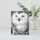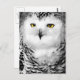 Les cartes postales sont parfaites pour faire des images encadrées à accrocher sur votre mur et sont une alternative bon marché et chic aux tirages d'affiches coûteux. Notre carte postale pour les amateurs d'oiseaux présente une photo originale du visage d'une jeune chouette enneigée aux beaux yeux jaunes. Le hibou a été photographié dans le terrain du château de Kelburn, près de Fairlie, Écosse, Royaume-Uni, Europe.
