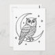 Carte Postale Chouette sur Crescent Moon avec Stars Line Art