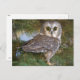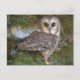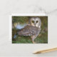 Carte d'animal montrant une chouette chèvre assise sur un sapin.