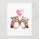 Carte Postale Chouettes de Saint-Valentin et ballon de coeur
