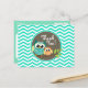 Carte Postale Chouettes mignonnes ; Aqua Green Chevron