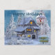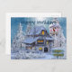 Carte Postale Christmas Greeting Winter Snowman Blue Rustic