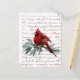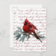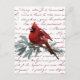 Christmas Holiday Red Cardinal Bird French Script Postcard. Blank Postcard.