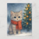 Christmas Kitten Postcard Cute Cat in Red Scarf by Holiday Tree.