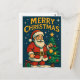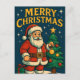 This charming Santa Claus design next to a Christmas tree, in a classic retro style, evokes a warm and festive atmosphere, perfect for the holidays. The vibrant colors and intricate details add a beautiful, celebratory touch to any product, whether for personal use or as a thoughtful gift.