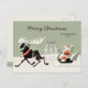 Père Noël veut essayer quelque chose de nouveau ! Ce Noël, il va y avoir un orignal qui tire son traîneau. L'orignal a l'air très heureux, mais les trois rennes de l'arrière - plan semblent confus. Carte de Noël de style rétro amusant. J'aime le travail de ligne intelligent, si simple et si expressif. Même les sabots semblent montrer la fierté de l'orignal. Un autre détail surprenant est les coureurs ornés du traîneau.