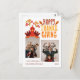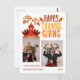 Carte de voeux de vacances avec une phrase festive colorée "Bon thanksgiving" avec une dinde et deux photos de votre choix. Personnalisé cette carte de voeux avec votre nom et votre année.