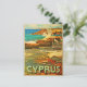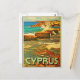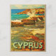 Le magnifique océan méditerranéen vert et bleu de Chypre avec des rochers escarpés cassant le spray fait de ce design de voyage vintage un paradis de rêveur.