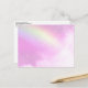 Carte postale avec un bel arrière - plan. Un ciel rose pastel avec des nuages moelleux et un arc-en-ciel couleur citron. Design magique et fantaisiste.