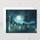 Concept d'Halloween, cimetière enchanté avec pierres tombales brillantes et illustration pleine lune.