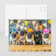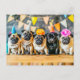 Carte Postale Cinq pugs avec des chapeaux de fête ensemble