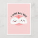 Citation de citation de nourriture asiatique mignonne Kawaii Bao & Dumplings Amour Pun Carte postale avec la lettre «Je me soucie de Bao You» est un salut affectueux et léger parfait pour vos proches. Les baos mignons et souriants de kawaii avec un fond de couleur pastel réchaufferont le cœur de vos amis, familles, parents, petites amies, petits amis ou conjoints.