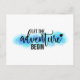 Carte postale inspirante "Let the Adventure Begin". Un design typographique simple mais efficace, du texte noir avec un coeur noir sur un arrière - plan texturé de couleur bleue. Cette carte sera un grand ajout à votre décor de maison ou de bureau, ou sera une carte postale idéale à envoyer à un ami ou à un proche.