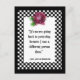Whimsical art numérique présente un cadre en damier noir et blanc, une fleur d'aquarelle violette en haut et une citation centrale d'Alice au pays des merveilles, qui dit : "Ça ne sert à rien de revenir à hier, parce que j'étais une autre personne à l'époque."