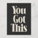 Faites une déclaration audacieuse avec cette carte postale élégante "You got this" ! Avec une typographie classique dans un design noir et crème frappant, cette carte est un moyen parfait pour envoyer motivation et encouragement. Que ce soit pour soutenir un ami, décorer votre espace de travail ou ajouter une touche d'émancipation à votre journée, ce design minimaliste mais impactable offre une confiance à chaque regard.