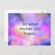 Une carte postale avec une citation inspirante qui dit "faites ce qui vous rend heureux". L'arrière - plan est une image spatiale lumineuse avec des formes nuageuses éthérées et des étoiles brillantes.