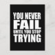 Vous pouvez ajouter un peu d'originalité à votre collection d'armoires avec ce "vous n'échouez jamais jusqu'à ce que vous arrêtez d'essayer" design texte avec une police de typographie géniale lettrage, est une excellente idée cadeau pour les hommes, les femmes, les maris, la petite amie de la femme, et un petit ami qui aimeront cette motivation unique et dicton inspirant. Les meilleures paroles extraordinaires courtes positives présentes pour votre collection de sagesse. Si vous aimez cette illustration, vous pouvez consulter d'autres modèles et options similaires.