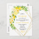 Cette carte postale de baby shower ludique et fantaisiste présente des citrons d'agrumes aquarelle et du feuillage sur un cadre géométrique doré. Le texte combine écriture manuscrite et polices serif pour un look élégant et moderne. Il est parfait pour un baby shower rustique d'été.