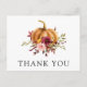 Merci à vos invités de célébrer ! Cette carte postale à thème d'automne vous remercie avec un citrouille d'aquarelle avec de belles fleurs d'automne. Personnalisez avec vos informations ou cliquez sur "Cliquez pour customiser plus loin" pour modifier les styles, la taille et les couleurs des polices. Le message sur le dos peut être personnalisé.