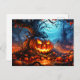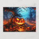 Carte Postale Citrouille éffrayant brillant dans la forêt