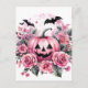 Carte Postale Citrouille et Roses avec chauves-souris Pinkoween