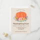 Famille Invitation et amis à votre fête spéciale avec cette carte postale d'invitation à la fête de grâces fleurie. Il est décoré d'un citrouille d'aquarelle, de feuillage d'eucalyptus et de tournesols. Customisez-le avec votre nom et vos coordonnées. Pour modifier davantage, utilisez l'outil de conception pour modifier la police, la taille de police ou la couleur. Parce que nous créons notre oeuvre, vous ne trouverez pas cette image exacte d'autres designers. Aquarelle originale © Michele Davies.