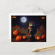 Carte Postale Citrouilles et hibou d'Halloween dans la nuit. Eff