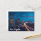 This vibrant postcard showcases Los Angeles at dusk, featuring its dazzling skyline, glowing highways, and the famous Hollywood sign in the distance. The stunning blend of warm lights and cool evening tones captures the energy and glamour of the City of Angels. Perfect for collectors, travelers, or anyone who loves iconic urban views.