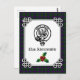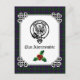 Carte de vacances élégante caractéristiques Scottish Clan Abercrombie (Abercromby) badge de crête et texte personnalisable, avec cadre saint festif et noeud celtique sur arrière - plan tartan