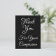 Cette carte postale de remerciement classe et séduisante comporte le message "Merci pour votre compassion" sur le devant, ainsi qu'un message personnalisable sur le dos. Il pourrait être utilisé pour offrir grâce à quelqu'un qui a fait quelque chose de spécial.