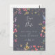 Cette carte postale classique bleue fleurs sauvages enregistrer la date est parfaite pour un mariage rustique. Le design présente des fleurs sauvages jaunes, violettes et blanches avec du feuillage sur un fond aquarelle rose et vert.