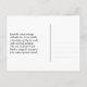 Cette conception traditionnelle de carte postale de remerciement comporte le message "Merci !" sur le devant, ainsi qu'un message personnalisable au verso. Elle peut être utilisée pour exprimer sa gratitude à quelqu'un qui a assisté à un mariage, un enterrement, une remise de diplôme ou tout autre événement.