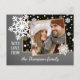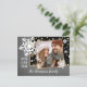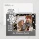 Unique, classique, tendance, jolie et décorative Carte de vacances. Mignonne AVEC AMOUR DU texte et de la chambre à customiser ou à personnaliser avec une photo et les noms (ou nom de famille) de votre choix sur mignon amusant flocons de neige éparpillé design motif sur un arrière - plan noir et gris chic. Et une saison personnalisable saluant poème sur le dos de la carte.