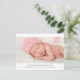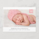 Cette carte postale faire-part de naissance moderne et traditionnelle vous permet de partager facilement vos nouvelles captivantes avec vos proches! Personnalisez la carte postale en ajoutant votre photo préférée à l'avant, customisez le monogramme rose et blanc, et ajoutez le nom et les détails de naissance de votre nouveau-né. Au verso, vous pouvez écrire un message personnel aux destinataires.