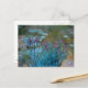 Une belle carte postale aux fleurs classiques, ornée d'iris et de nénuphars, peinte par le peintre impressionniste français Claude Monet.