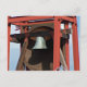 Cloche en laiton maritime avec son ombre suspendue sur un levier en acier peint en rouge