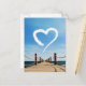 Un pont en bois - un chemin sans fin vers l'océan avec un coeur dans le ciel, fait de nuages.
