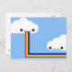Un mignon nuage tirant un arc-en-ciel sur une carte postale. Une image amusante à envoyer en vacances ou aux enfants.