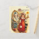 Carte postale vintage de Halloween avec un clown qui explose d'un miroir devant une jeune fille aux bougies. Elle laisse tomber une horloge dans le processus du tour.