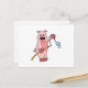 Carte Postale Cochon à la pêche avec une canne à pêche et un poi
