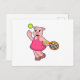 Très jolie carte du Lapin toujours pressé d'Alice . Belle qualité de l'impression en rose pastel.