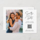 Ce mariage simple et élégant, noir et blanc enregistrer la date les cartes postales disposent de typographie manuscrite moderne avec votre photo personnelle préférée et un code QR qui mène à votre site mariage.