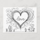 Carte Postale Coeur d'amour avec lignes tracées à la main