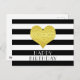 Carte Postale Cœur Doré Rayures Noires et Blanches Joyeux Annive