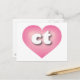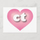 Cette carte postale est dotée d'un coeur rose avec un centre blanchi contenant des lettres coques inférieures blanches, arrondies et audacieuses, une version ludique de l'abréviation Connecticut, l'état de la constitution. Le verso de la carte est vide, en attendant vos sentiments manuscrits ou le texte customisé.