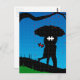 Un couple de courtisants, silhouette, s'embrassant sous un parapluie, pendant une pluie de coeurs cupides rouges, s'installe dans un cadre de scie avec le coeur absent de sa place.