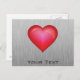 Carte Postale Coeur rouge ; aspect métallique