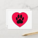 Carte Postale Coeur rouge avec Empreinte de patte de chien