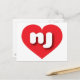 Cette carte postale est dotée d'un coeur rouge vif contenant les lettres coques nj, blanches et arrondies, une abréviation ludique pour le New Jersey, l'état du jardin. Le verso de la carte postale est vide, en attendant vos sentiments manuscrits ou le texte customisé.