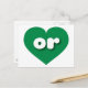 Cette carte postale est dotée d'un coeur vert vif contenant des lettres coques inférieures arrondies, blanches et audacieuses ou, une abréviation ludique pour l'Oregon, l'état castor. Le verso de la carte est vide, en attendant vos sentiments manuscrits ou le texte customisé.